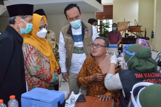 Vaksinasi ulama dan imam masjid ini hasil kalaborasi Pemkab Gresik bersama Kodim 0817 Gresik dan Polres Gresik, Majelis Ulama Indonesia (MUI) Gresik, serta Dewan Masjid Indonesia (DMI) Gresik ini dicanangkan oleh Wakil Bupati Gresik Aminatun Habibah.
