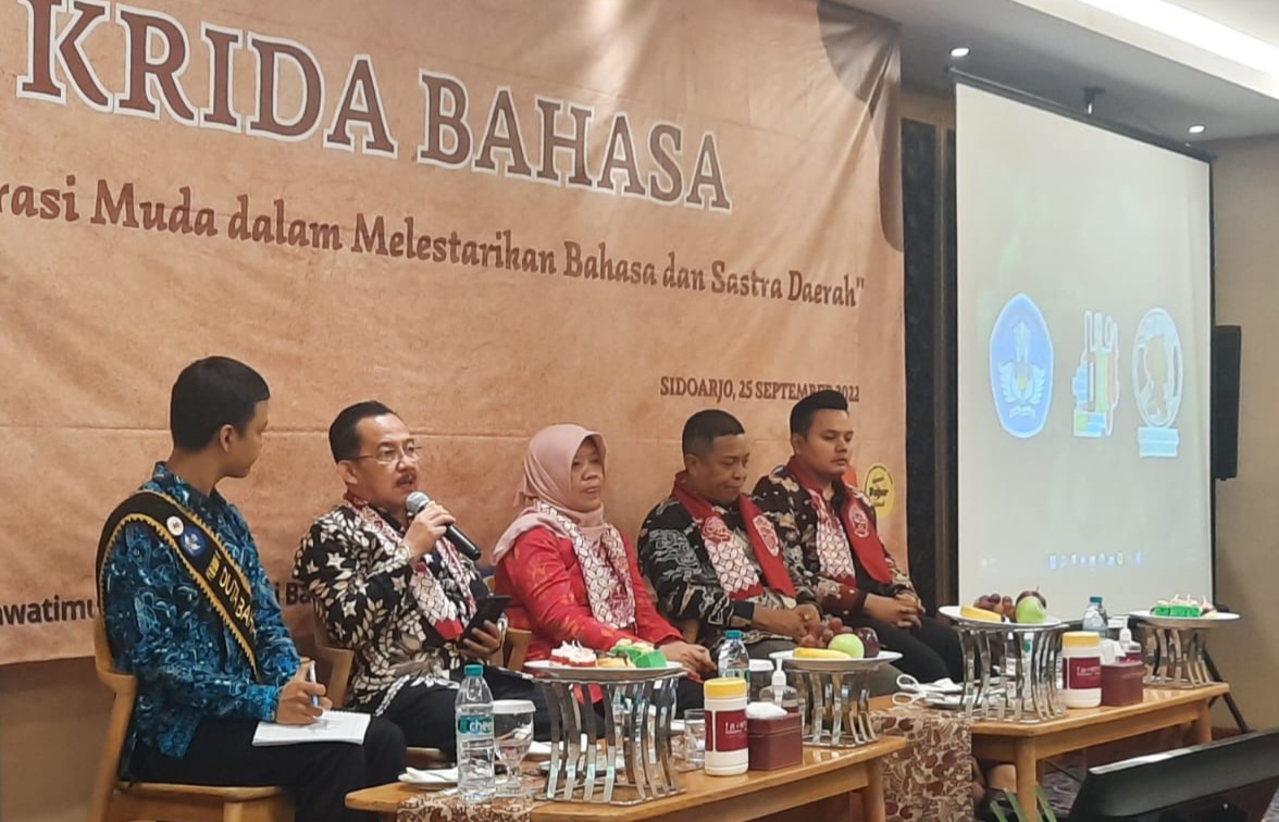 SIDOARJO (Radarjatim.id) Upaya memperkuat jati diri bangsa dalam bidang bahasa dan sastra Indonesia dan daerah. Balai Bahasa Provinsi Jawa Timur bersama dengan Ikatan Duta Bahasa Jawa Timur Minggu, 25 September 2022 melaksanakan kegiatan Krida Bahasa.