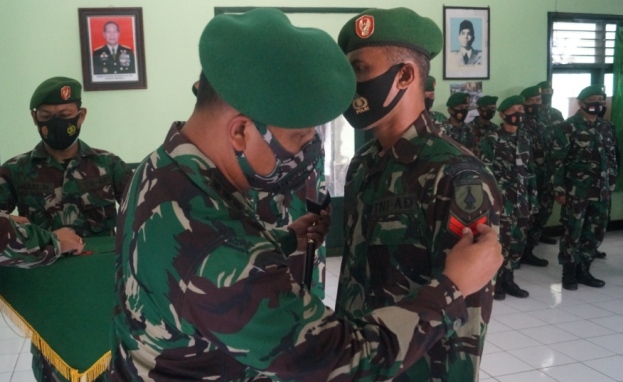 Salah satu anggota Kodim Surabaya Utara yang naik pangkat