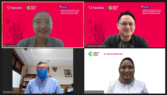 Sebagai bagian dari upaya edukasi, hari ini Halodoc menyelenggarakan webinar bertajuk ‘Ciptakan Masyarakat Jawa Timur yang Sehat di Masa Adaptasi Kebiasaan Baru’. Staf Khusus Menteri Kesehatan RI Bidang Peningkatan SDM Kesehatan, Kementerian Kesehatan RI, dr. Mariya Mubarika, turut memberikan arahan terkait panduan AKB, khususnya menjelang dimulainya kegiatan belajar dan mengajar di Jawa Timur dan juga seiring dengan meningkatnya aktivitas di luar rumah.