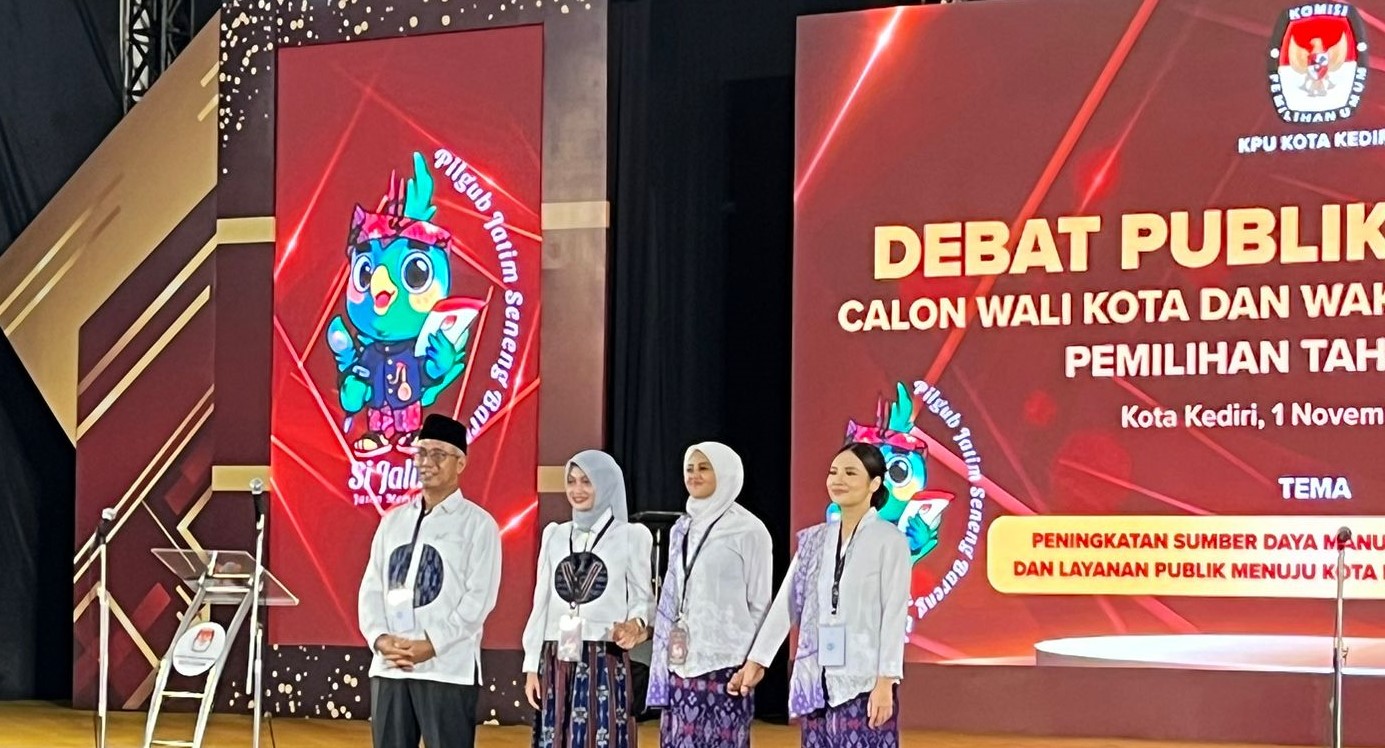 KEDIRI (RadarJatim.id) — Komisi Pemilihan Umum (KPU) Kota Kediri, Jawa Timur, secara resmi telah menggelar debat pertama pasangan calon (paslon) wali kota dan wakil wali kota Kediri. Debat paslon perdana itu berlangsung di IKCC Kota Kediri, Jumat (1/11/2024).