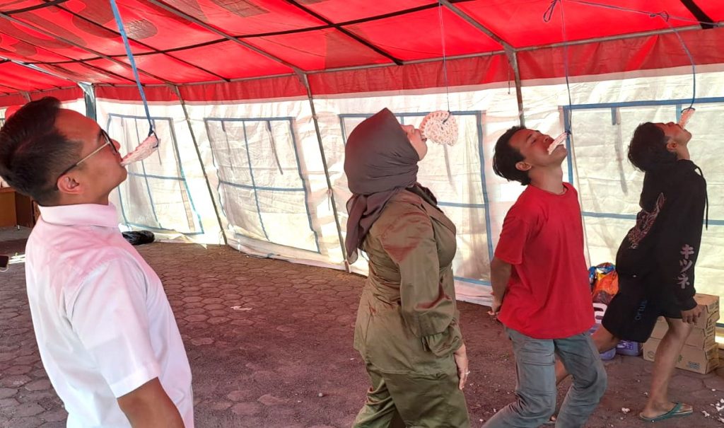 Dailah Pratama Yudhiarto, SH dan Irda Bella A. F, S.Ked bersama Kepala Dinas Sosial Sidoarjo Misbachul Munir. Mereka beramai-ramai mengikuti lomba makan kerupuk bersama dengan warga binaan, ODGJ (Orang Dengan Gangguan Jiwa) Liponsos Sidoarjo dalam Peringatan 17 Agustus 2025, pada (12/8/2025) di halaman Liponsos Sidoarjo.
