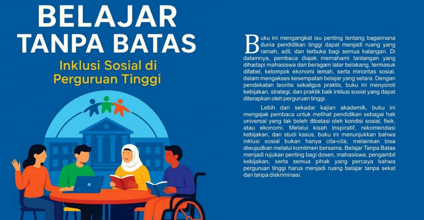 Di ruang rapat pimpinan perguruan tinggi, ada satu pertanyaan yang jarang dilontarkan terkait inklusivitas kampus: “Seberapa inklusif kampus kita hari ini?” Buku Belajar Tanpa Batas: Inklusi Sosial di Perguruan Tinggi (2025), karya tim penulis dari Universitas Negeri Surabaya dan Universitas Negeri Malang, hadir untuk menjawab kegelisahan tersebut.
