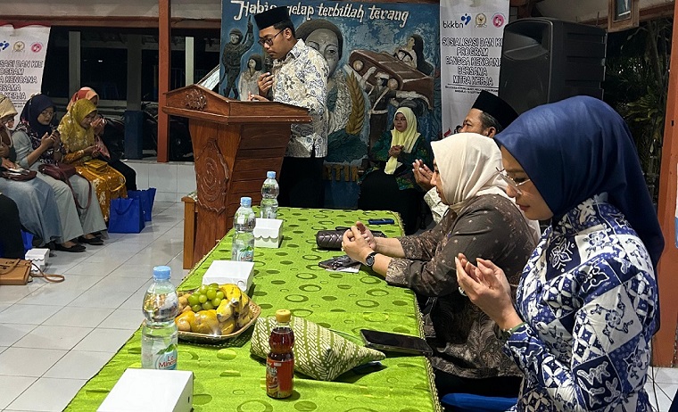 Anggota Komisi IX DPR RI Arzeti Bilbina berdoa bersama sebelum membuka acara sosialisasi KIE Bangga Kencana di Balai Desa Kedung Sugo Prambon