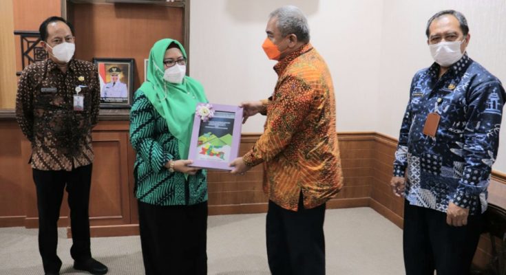 Penghargaan itu diserahkan Kepala BPKP Perwakilan Jawa Timur Alexander Rubi Setyoadi kepada Wakil Bupati Gresik Aminatun Habibah di Ruang Graita Eka Praja Kantor Bupati Gresik, Kamis (3/2/2022). Saat menerima penghargaan itu, Bu Min, sapaan akrab Wabup Aminatun Habibah, didampingi Sekretaris Kabupaten (Sekkab) Gresik, Achmad Washil Miftachul Rachman dan Kepala Inspektorat Setkab Edy Hadisiswoyo.