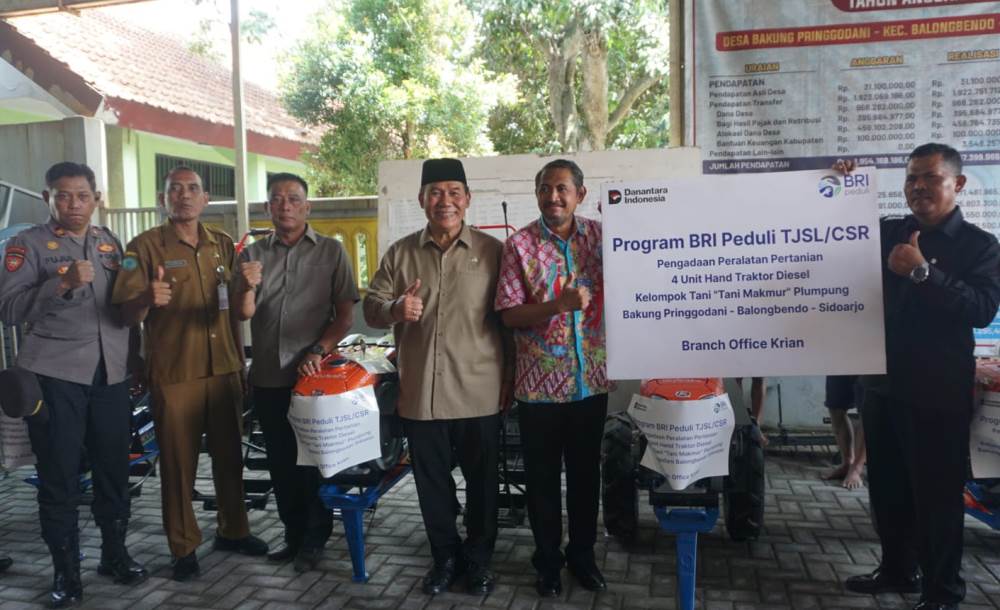 “Ini adalah penyaluran CSR dari BRI yang bekerja sama dengan Komisi VII DPR RI. Kami ikut mempercepat penyaluran CSR berupa empat hand traktor yang sangat dibutuhkan petani untuk mempercepat proses pengolahan pertanian,” kata BHS seusai penyerahan empat unit hand traktor pertanian di Balai Desa Bakung Pringggodani, Kecamatan Balonbendo, Kabupaten Sidoarjo,  Selasa (23/12/2025).