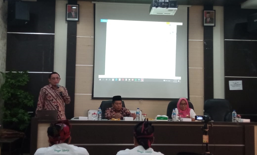 Ketua Komisi B DPRD Kabupaten Sidoarjo, H. Bambang Pujianto saat menjadi narasumber di FGD tentang pengawasan program Kurma di aula Kantor Kecamatan Jabon.