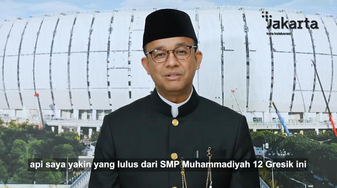 GRESIK (RadarJatim.id) — Kebanggan terpancar dari para wisudawan SMP Muhammadiyah 12 GKB Gresik, Minggu (26/6/2022). Hal itu terasa spesial karena prosesi wisuda mereka dihadiri Gubernur DKI Jakarta Anies Baswedan secara virtual.