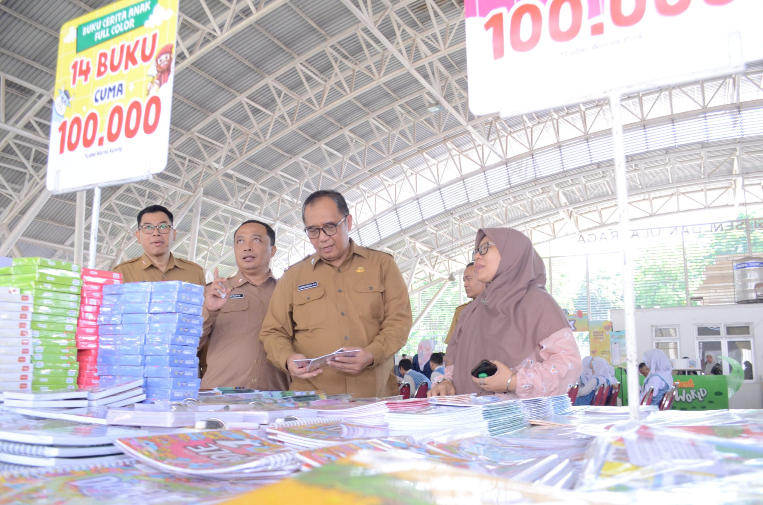 Sekda Achmad Washil menyampaikan apresiasi dan penghargaan yang setinggi tingginya kepada Dinas Perpustakaan dan Kearsipan. Demikian juga terhadap penerbit Mizan dan penerbit lainnya yang berkolaborasi menghadirkan bazar buku melalui program “Out of The Book and Back Two Books“.