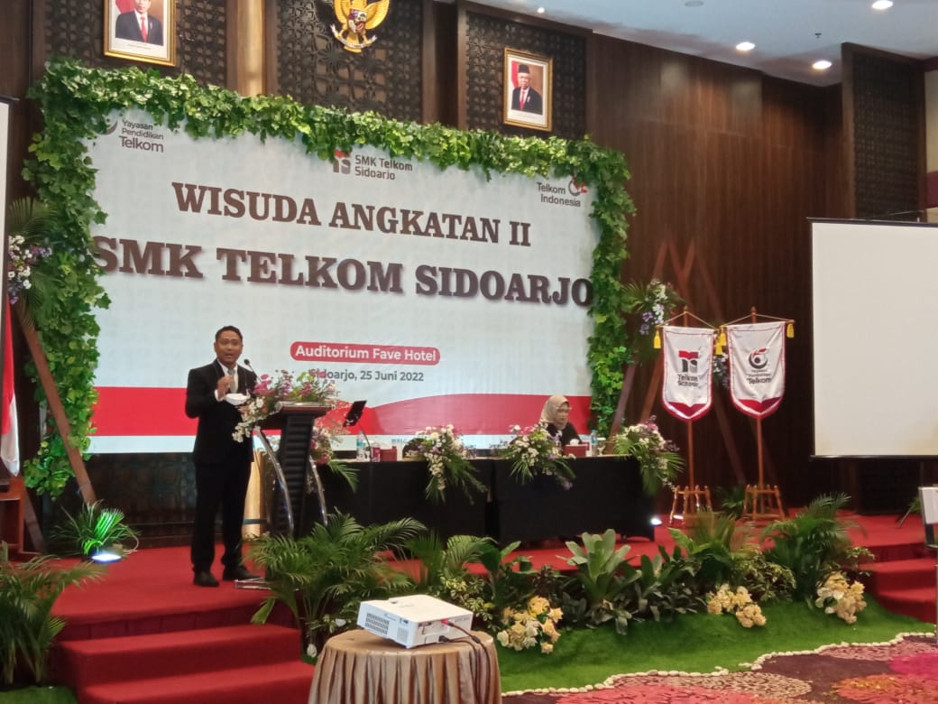 Abror, M.Pd, Kepala SMK Telkom Sidoarjo dalam sambutannya menuturkan bahwa keberadaan sekolah yang dipimpinnya atas inisiasi dari Yayasan Pendidikan Telkom dengan infrastruktur yang menunjang proses belajar mengajar.