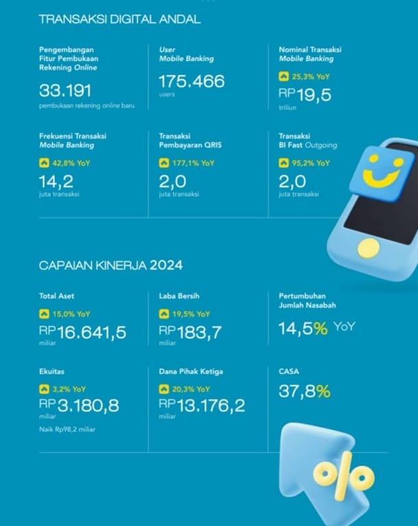 Sementara pada 2025 ini (hingga semester I), total aset BCA Syariah tercatat sebesar Rp 17,60 triliun, meningkat 18 persen secara tahunan (year on year/YoY). Pada tahun 2025 ini (hingga semester I, Januari-Juni), kinerja BCA Syariah terus menunjukkan tren positif dan solid. Hal ini ditunjukkan dengan capaian laba bersih yang tumbuh 12,0 persen secara tahunan (year on year/YoY) menjadi Rp 100 miliar.