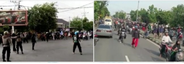 Bahkan, bentrok juga terpantau hingga di Jalan Nasional Lamongan – Babat, tepatnya di simpang tiga Kecamatan Pucuk. Polisi sesekali melepas tembakan peringatan untuk membubarkan massa yang saling merangsek.