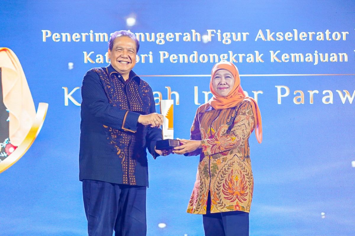 Piala penghargaan tersebut bahkan langsung diserahkan oleh Chairman CT Corp, Chairul Tanjung. Karenanya anugerah itu kian mewujudkan hadirnya kontribusi nyata Khofifah dalam mendorong kemajuan Jawa Timur melalui desa.