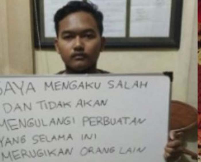 Tersangka Gilang saat diamankan Polisi
