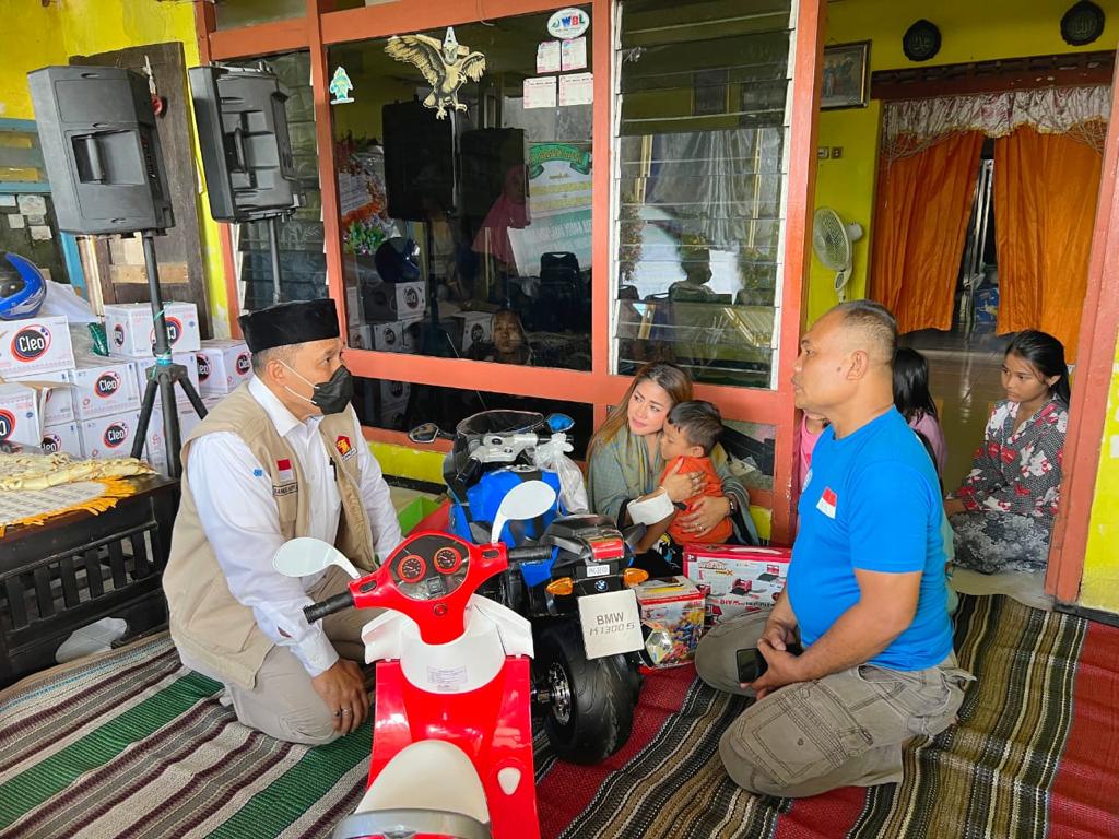“Saya berikan mainan motor mini pakai remot dan baterai untuk kedua putra almarhum dan bermacam macam mainan supaya bisa digunakan untuk mengisi waktu bermain mereka. Supaya (anak korban,Red) tidak larut dalam kesedihan,” terang anggota DPR RI periode 2014-2019 ini.