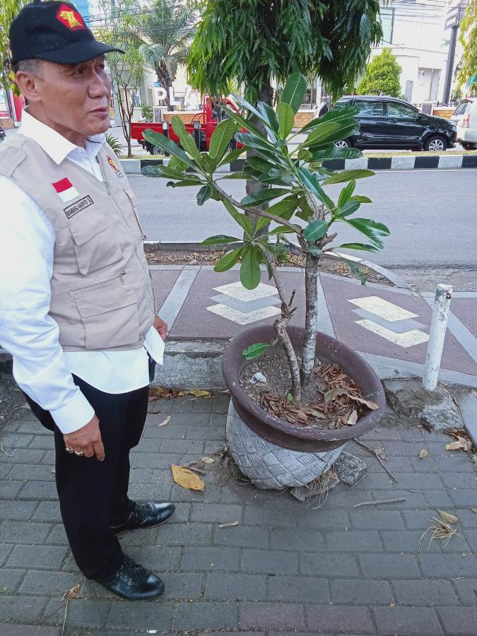 BHS melihat pot rusak yang ada di depan akses masuk TMP