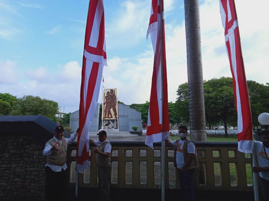 BHS bersama tim BHS Peduli memasang bendera hias di TMP Sidoarjo