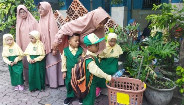 Di hari pertama memasuki semester 2 tahun pelajaran 2023-2024 itu, pemandangan Senin pagi yang cerah menunjukkan, bahwa lebih dari 100 siswa TK di ujung Selatan Gresik itu lagi membawa sampah berupa beragam botol plastik bekas air kemasan. Mereka ramai-ramai membawa barang yang masuk kategori sampah tersebut, bukan lantaran tengah melakukan demo. Mereka mengumpulkan botol plastik itu di tempat yang telah disiapkan pihak sekolah, justru untuk maksud yang positif, yakni untuk kepentingan mengurangi beban lingkungan dari sampah plastik di lingkungan rumah masing-masing.