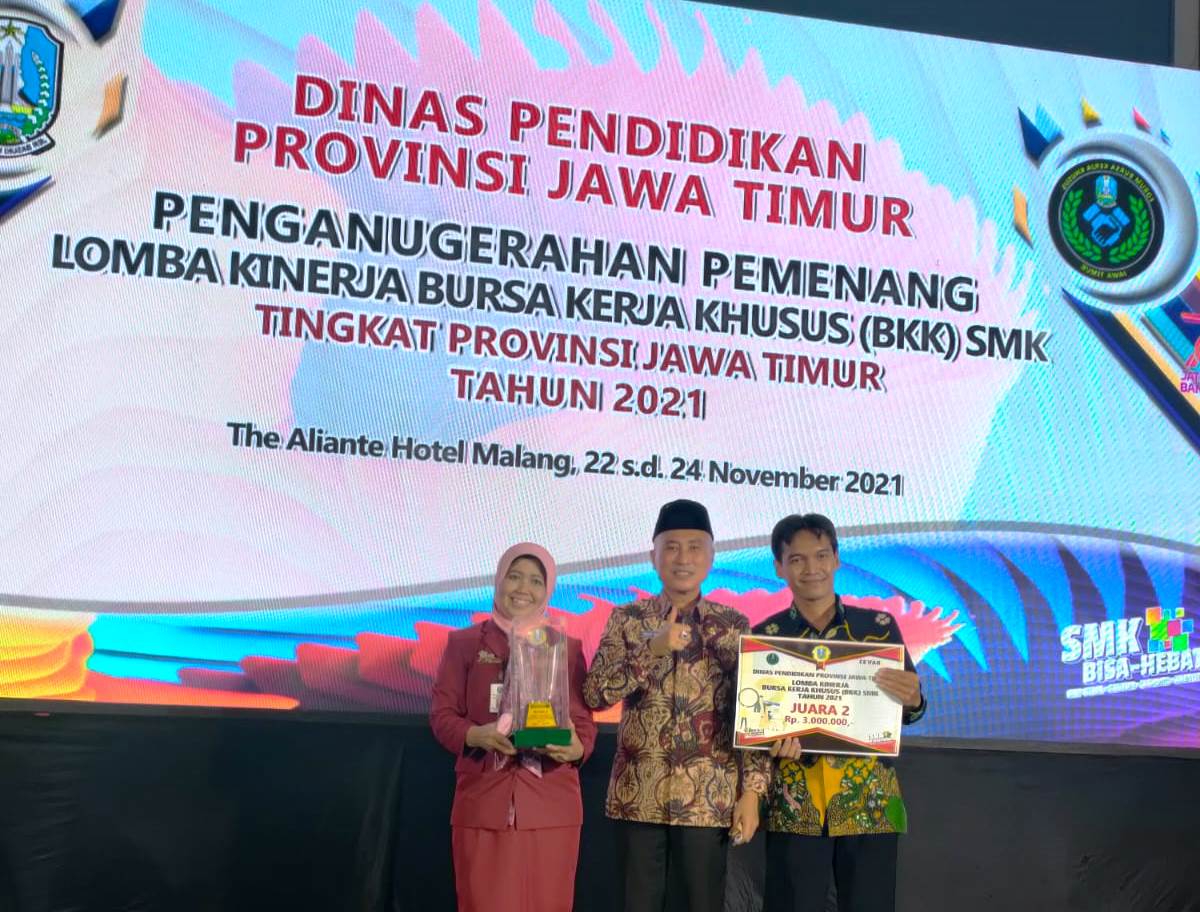 SIDOARJO (Radarjatim.id)-Setelah berhasil melewati beberapa tahap seleksi. BKK (Bursa Kerja Khusus) SMK Negeri 2 Buduran Sidoarjo akhirnya berhasil meraih Juara II dalam Lomba Kinerja BKK SMK se Jawa Timur 2021.