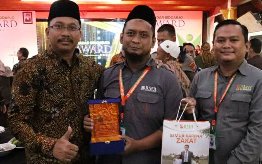 Manager Operasional Lembaga Amil Zakat Nasional (Laznas) Baitul Mall Hidayatullah (BMH) Gerai Sidoarjo, S. Abd Karim, S.E.I (tiga dari kanan) saat mendapatkan penghargaan sebagai Laznas teramanah di Pendopo Delta Wibawa Pemkab Sidoarjo