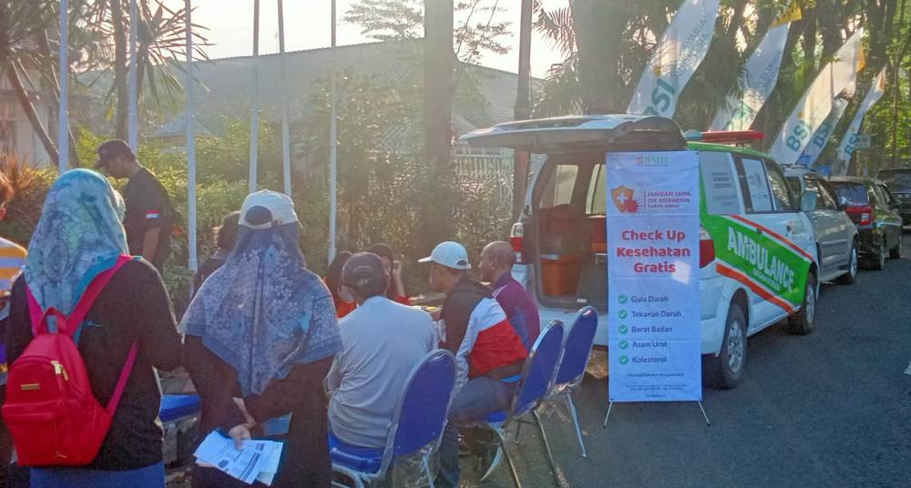 “Kami dari BMH Gerai Sidoarjo menyiapkan satu mobil ambulance dan melakukan pemeriksaan kesehatan gratis. Alhamdulillah pemeriksaan gratis ini disambut antusias dan banyak yang ikut melakukan cek kesehatan,” kata S. Abdul Karim S.E.I.