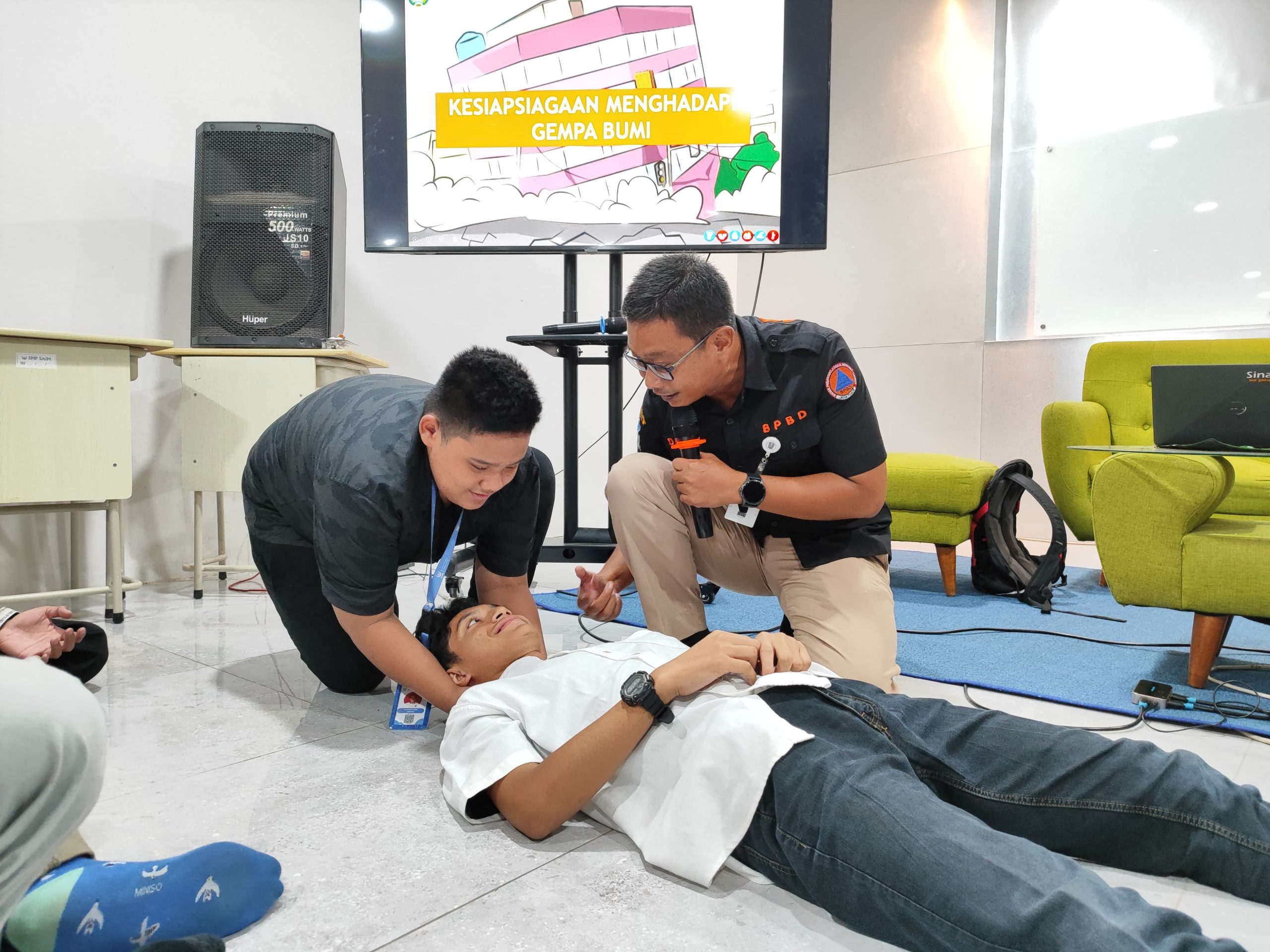 Para siswa sangat antusias karena tidak hanya mendengarkan teori, tetapi juga langsung mempraktikkan apa yang telah mereka pelajari. Mereka belajar langkah-langkah Pertolongan Pertama Gawat Darurat (PPGD), termasuk teknik menolong korban tersedak dan cara melakukan evakuasi seorang diri. Melalui simulasi ini, para siswa lebih mudah memahami tindakan yang harus diambil saat terjadi bencana.