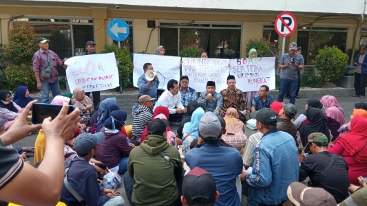 Puluhan warga yang sejak tadi menunggu hasil hearing, langsung masuk kehalaman gedung DPRD Sidoarjo dan duduk bareng diatas lantai bersama anggota Komisi A, Kepala Desa (Kades) Pranti, Camat Sedati dan BPN Sidoarjo.