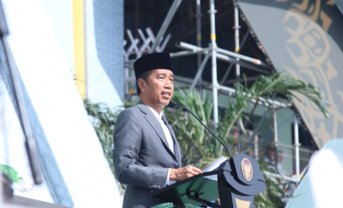 Jokowi menyampaikan hal ini dalam pidato sambutan sebelum membuka secara resmi Puncak Resepsi Satu Abad NU di GOR Delta Sidoarjo, Jawa Timur, Selasa (7/2/2023).