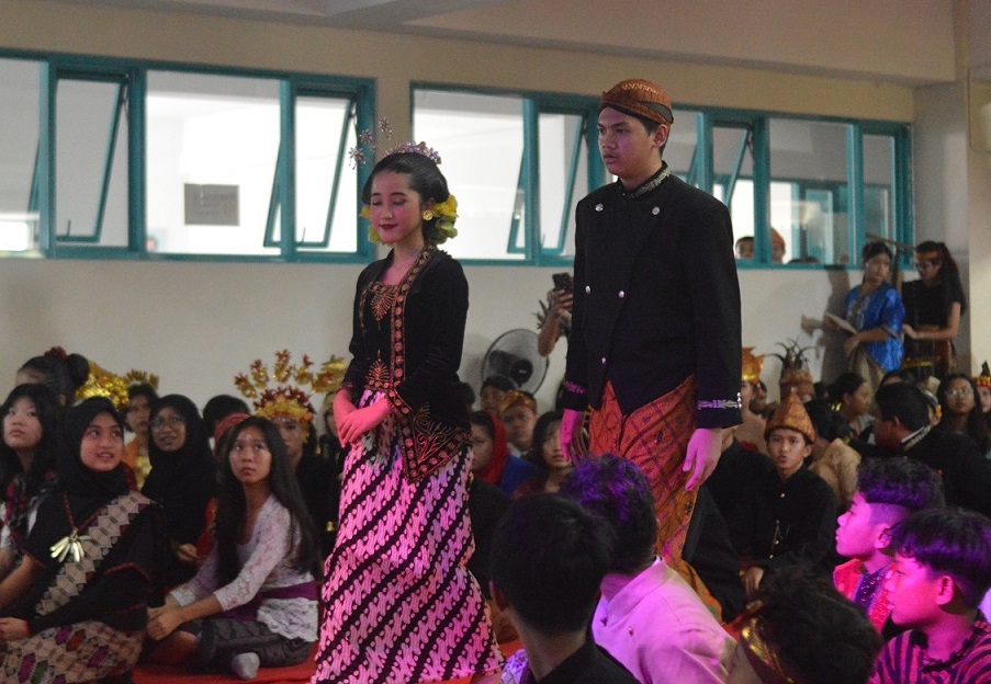 Sorakan semakin ramai saat lomba fashion show dimulai, di mana seluruh siswa, guru dan komite sekolah turut mengenakan pakaian adat dari berbagai daerah di nusantara. Mereka berjalan di catwalk menuju panggung dengan penuh percaya diri, menampilkan keragaman budaya Indonesia yang begitu memukau.