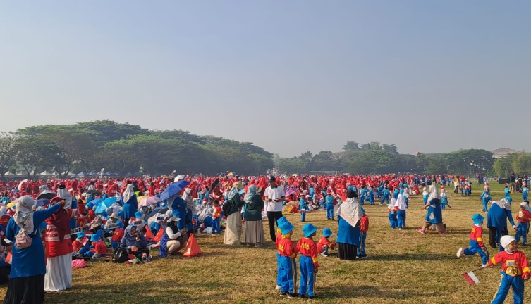 Ribuan anak yang datang bersama bunda PAUD nya masing-masing itu berasal dari berbagai lembaga PAUD dan TK se Kabupaten Sidoarjo.