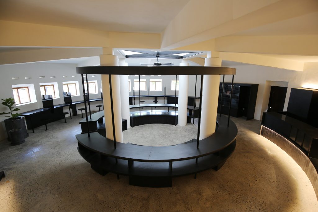 Bangunan bunker yang didominasi warna putih itu kini semakin bersih dan rapi. Di dalamnya sudah ditata di beberapa sudutnya dengan meja yang berasal dari kayu dan memanjang, kemudian dilengkapi kursi berjajar. Di bagian tengah ruangan utama terdapat meja yang melingkar.