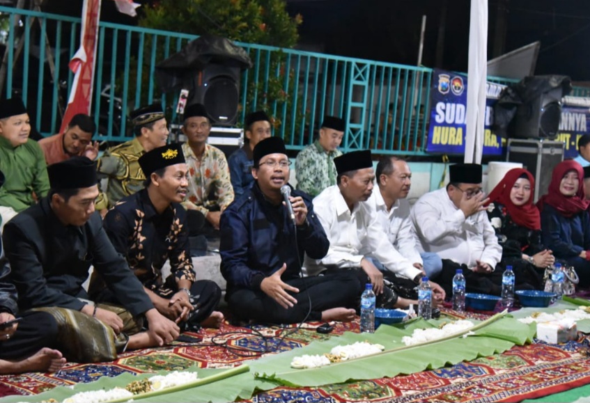 SIDOARJO (Radar Jatim.id) — Bupati Sidoarjo Ahmad Muhdlor Ali. Putra KH. Agoes Ali Masyhuri pengasuh Pondok Pesantren Bumi Sholawat Lebo itu lebih memilih menghabiskan malam tahun baru dengan makan bareng bersama ribuan warganya dari 5 desa wilayah Kecamatan Tulangan, Krembung dan Prambon. Sabtu malam (31/12/2022) warga dari 5 desa itu menggelar tasyakuran dan do’a bersama selanjutnya makan bareng dengan lesehan beralaskan daun pisang. Mereka berjejer mulai dari jalan pertigaan Pasar Tulangan hingga jalan Bulang, Prambon sepanjang 5,4 km.