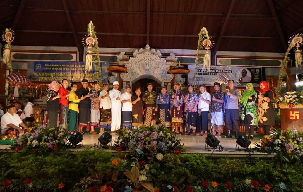 SIDOARJO (Radarjatim.id) — Bupati Sidoarjo berharap kepada para Umat Hindu agar jangan merasa minoritas. Jangan merasa inferior dan jangan merasa terpinggirkn. Ungkapan dan harapan tersebut disampaikan Bupati Sidoarjo Ahmad Muhdlor acara Dharma Santi memperingati Hari Raya Nyepi 1945 Saka, Minggu (2/4/2023) di Pura Jala Siddhi Amertha, Gedangan Sidoarjo.