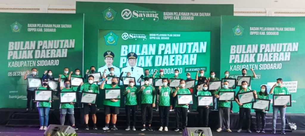 SIDOARJO (Radarjatim.id)-Usai Gowes dengan para wajib pajak serta jajarannya, Minggu (5/12/2021) tadi pagi. Bupati Sidoarjo langsung memberikan penghargaan kepada 30 wajib pajak panutan, pada pembayaran pajak tahun anggaran 2021. Hingga akhir Nopember 2021 perolehan pajak di Sidoarjo sudah mencapai sekitar 93 persen atau sekitar Rp 897 miliyar.