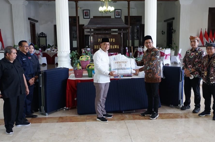 SIDOARJO (RadarJatim.id) — Musibah bencana alam angin puting beliung yang menimpa warga Sidoarjo, membuat rasa iba Pemkot Surabaya. Selasa (25/10/2022) kemarin Wali Kota Surabaya Eri Cahyadi, ST, MT menyerahkan bantuan secara simbolis kepada Bupati Sidoarjo Ahmad Muhdlor Ali, SIP di Pendopo Delta Wibawa.