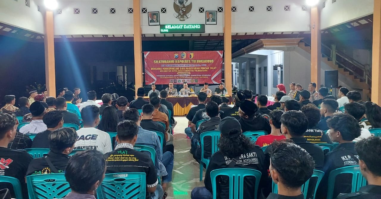 TULUNGAGUNG (RadarJatim.id) — Paguyuban Pencak Silat Kecamata Boyolangu, Tulungagung, Jawa Timur menggelar silaturahmi bersama Kapolres Tulungagung dan Forkopimcam Boyolangi, Sabtu (25/1/2025). Silaturahmi diselenggarakan sebagai ikhtiar menciptakan situasi keamanan dan ketertiban masyarakat (Kamtibmas) yang nyaman dan kondusif.