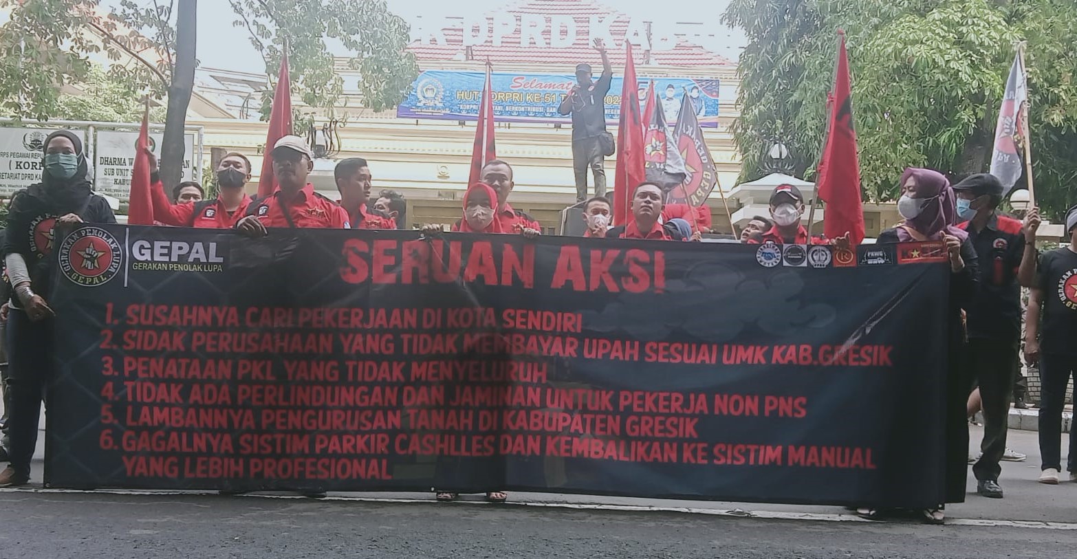 Diawali dari depan pendapa atau rumah dinas bupati Gresik, Gepal yang merupakan gabungan beberapa elemen, seperti Kongres Aliansi Serikat Buruh Indonesia (Kasbi), Solidaritas Perjuangan Buruh Indonesia (SPBI), Paguyuban Kereta Wisata Gresik (PKWG), dan beberapa lainnya melakukan orasi refleksi akhir tahun sebagai evaluasi atas kinerja pemerintah daerah.