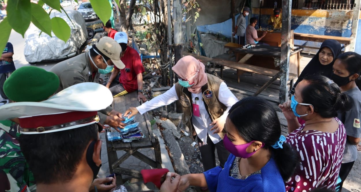 Petugas gabungan bagi-bagi masker gratis kepada warga Gresik. (Foto: ist)