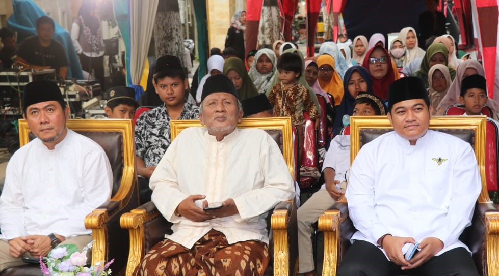 Ketum MUI Gresik KH Ainur Rofiq Thoyyib (tengah) bersama Ketua DPRD M. Syahrul Munir (kanan) bersama anak-anak yatim dan duafa.