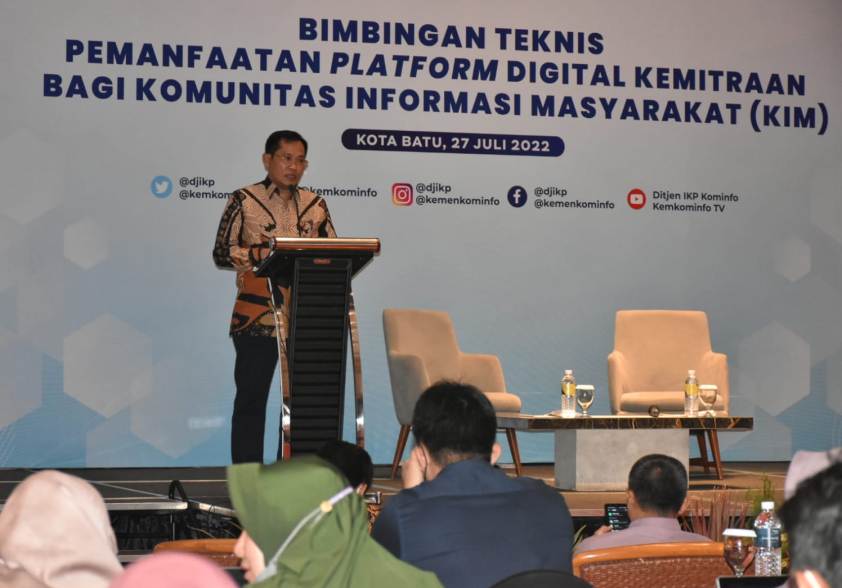 Kepala Dinas Kominfo Jawa Timur, Hudiyono, saat membuka acara Bimtek KIM di Orchid Hotel Batu, Rabu (27/7/2022) menyampaikan, KIM merupakan salah satu mitra strategis pemerintah, dalam hal ini Kementerian Komunikasi dan Informatika (Kominfo) dalam upaya penyebarluasan atau diseminasi informasi publik.