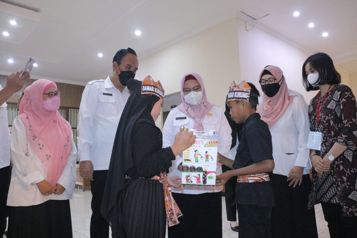 Sebelum acara dimulai Wabup menyempatkan diri mendatangi Duta Damar Kurung yang berada tepat di samping pintu acara. Wabup merasa kagum dan sempat tertawa lepas saat anak-anak itu menjelaskan dengan gamblang apa makna dan arti pada gambar damar kurung hasil karya mereka.