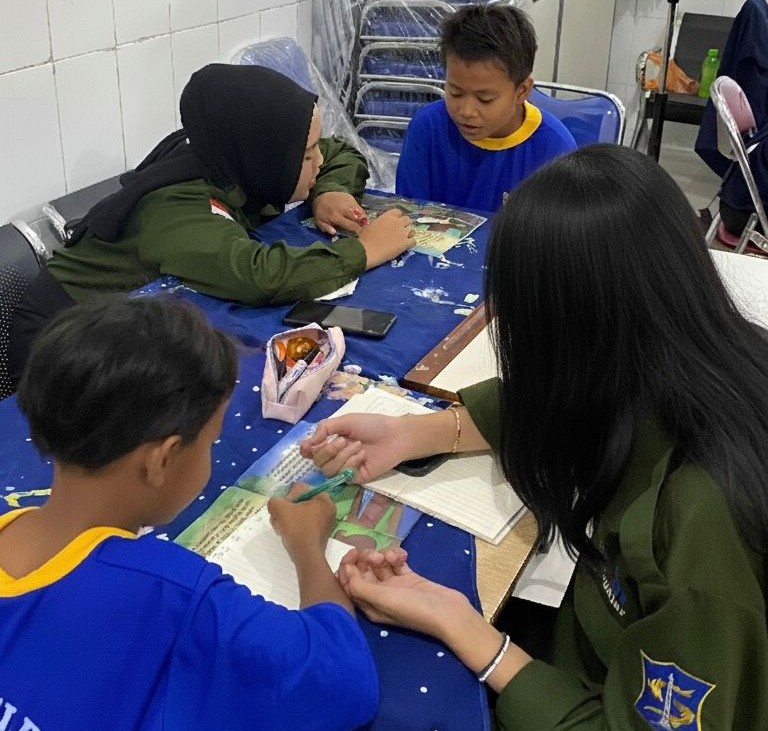 Aktivitas yang dilakukan, menggunakan buku bergambar interaktif dan kartu kata (flashcard) dengan tema lokal Surabaya, misalnya, ikon Suro-Boyo, dan makanan khas untuk memicu minat.