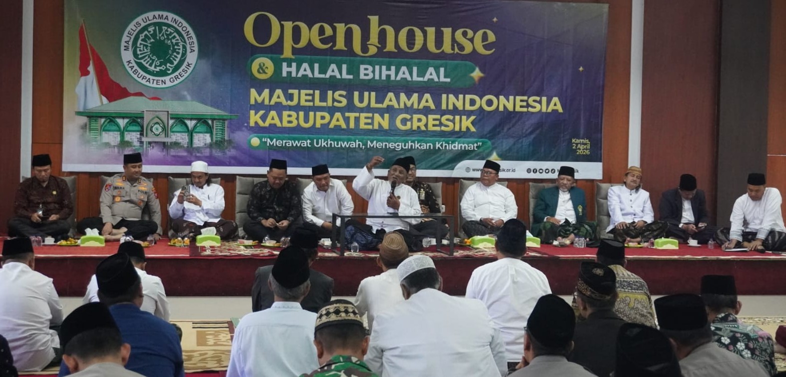 GRESIK (RadarJatim.id) — Halal Bihalal 1447 H yang digelar Majelis Ulama Indonesia (MUI) Kabupaten Gresik menjadi momentum penting untuk meneguhkan kolaborasi ulama denan umara (pemerintah) di tengah situasi global yang semakin tidak menentu. Kegiatan tersebut berlangsung di Aula Kantor MUI Kabupaten Gresik, Kamis (2/4/2026).