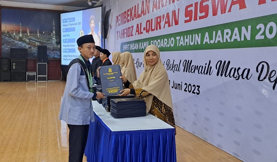 Dalam ‘Pembekalan Akhir dan Pengukuhan Tahfidz Al Qur’an Siswa kelas IX SMPIT Insan Kamil Sidoarjo’ tersebut, berjumlah 126 siswa. Mereka yang sudah tahfidz dengan 15 juz lebih menerima beasiswa tabungan amal salah 2023 dari sekolah. Yakni ada 4 siswa yang hafal 15 juz, 5 siswa hafal 16 juz, 1 siswa hafal 18 juz, 1 siswa hafal 27 dan ada 6 siswa yang hafal 30 juz.