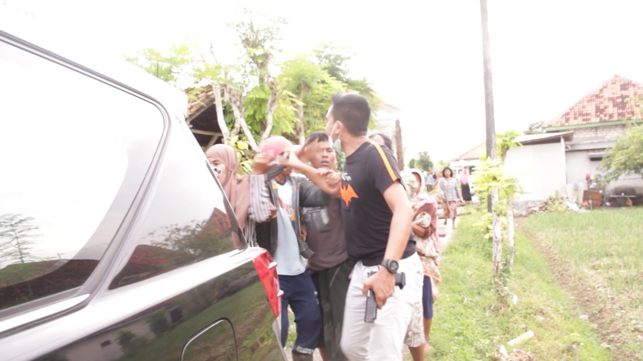 Pada saat penangkapan itulah, terjadi tindakan penghadangan yang dilakukan oleh massa yang membawa celurit dan kayu sembari berteriak teriak. Massa tampak berusaha menghalangi petugas BNNP Jatim dan Polsek Sokobanah untuk mengamankan HS. Sampai akhirnya DPO dibawa pergi oleh massa.