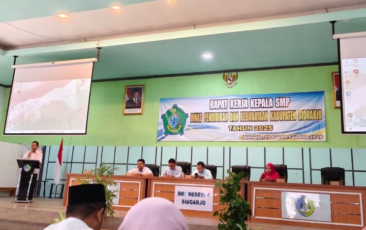 Peningkatan kualitas tersebut dilakukan oleh Kepala Dinas Dikbud Sidoarjo Dr. Tirto Adi, M.Pd dengan didampingi Kabid Profesional Guru dan Tenaga Kependidikan, Slamet Riyadin, S.STP M.Pd dalam Rapat Kerja Kepala Sekolah, yang dimulai pada 25 hingga 28 Agustus 2025 di Aula SMP Negeri 4 Sidoarjo.