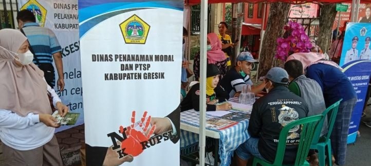Layanan perizinan yang dibuka DPMPTSP Gresik di area Car Free Day, (Foto: Suhartoko)