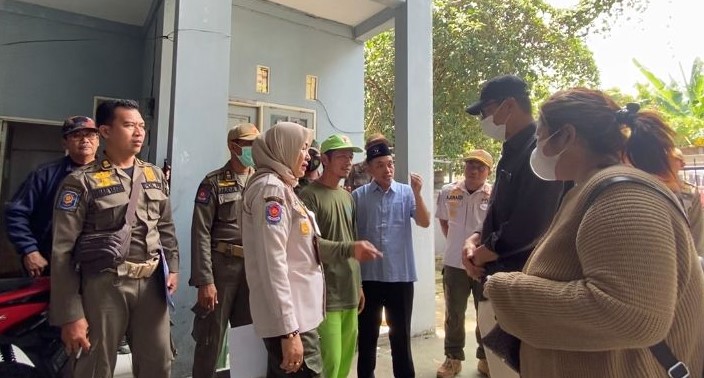 Dialog antara tim gabungan dipimpin Camat Kebomas Jusuf Ansyori dengan pengelola rumah kos. (ist)