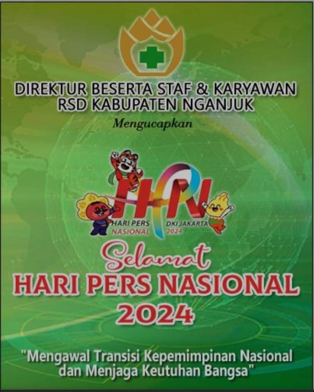 Direktur Beserta Staf dan Karyawan RSD Nganjuk Mengucapkan Selamat Hari Pers Nasional 2024 dengan tema “Mengawal Transisi Kepemimpinan Nasional dan Menjaga Keutuhan Bangsa”