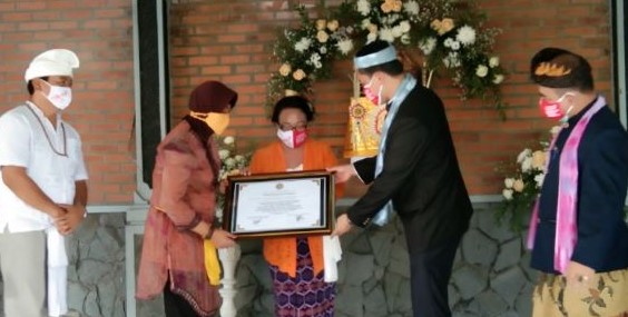 “Kami merasa bangga dan bersyukur, di kala masyarakat yang panik dan hiruk-pikuk karena pandemi Covid-19 sekarang ini, masih ada pribadi yang mau melatih, membimbing, serta mendampingi umat Hindu dalam membatik serta pembinaan UKM, ” ujar Dirjen Bimas Hindu Tri Handoko Seto, saat penyerahan penghargaan.